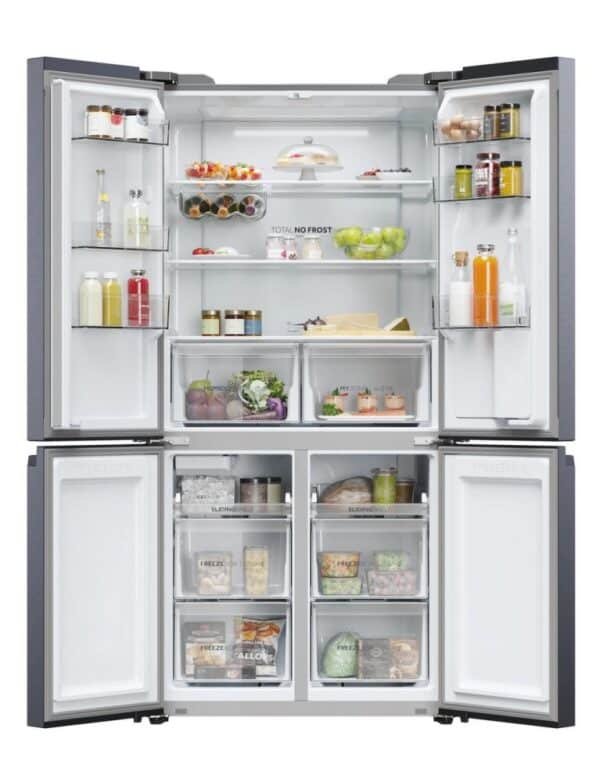This stunning American-style fridge freezer from Haier is equipped with a range of technology for optimal food storage. MyZone allows you to adjust the temperature within the compartment quickly and easily depending on your storage needs at the time. With a simple touch, just choose the temperature to suit the food you’re storing. The Humidity Zone drawer keeps your fruit and vegetables fresh two times longer too, thanks to constantly monitoring humidity levels. The automatic plumbed-in water dispenser provides clean, filtered water when you need it. And, the auto ice maker will provide cubed ice for a variety of uses. As the brushed black HCR5919EHMB is a Total No Frost model, you won’t need to worry about ice build-up.