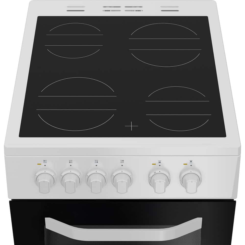 The ceramic hob offers quick, even heating with four zones for flexible cooking. Easy-to-use controls and a sleek white finish make it a great fit for any home.